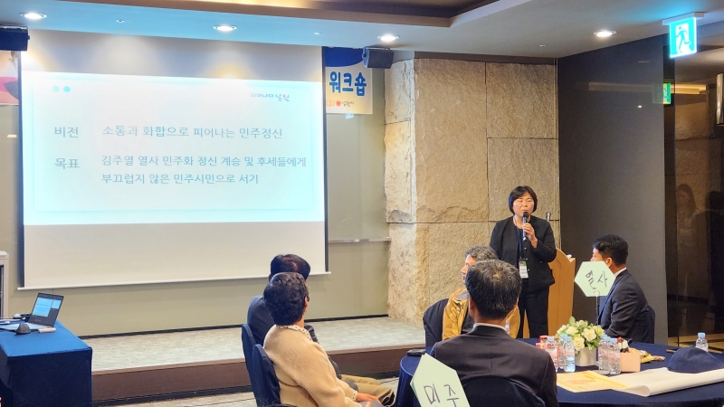 À̹ø ¿öÅ©¼óÀº ±èÁÖ¿ ¿»çÀÇ ¼þ°íÇÑ Èñ»ýÁ¤½ÅÀ» µÇ»õ±â°í, ½Ã¹Î»çȸ°¡ ÇÔ²² ¸¸µå´Â ¹ÎÁÖÁ¤½Å °è½Â°ú Áö¿ª °øµ¿Ã¼ÀÇ ¿ªÇÒÀ» ³íÀÇÇϱâ À§ÇØ ¸¶·ÃµÆ´Ù.