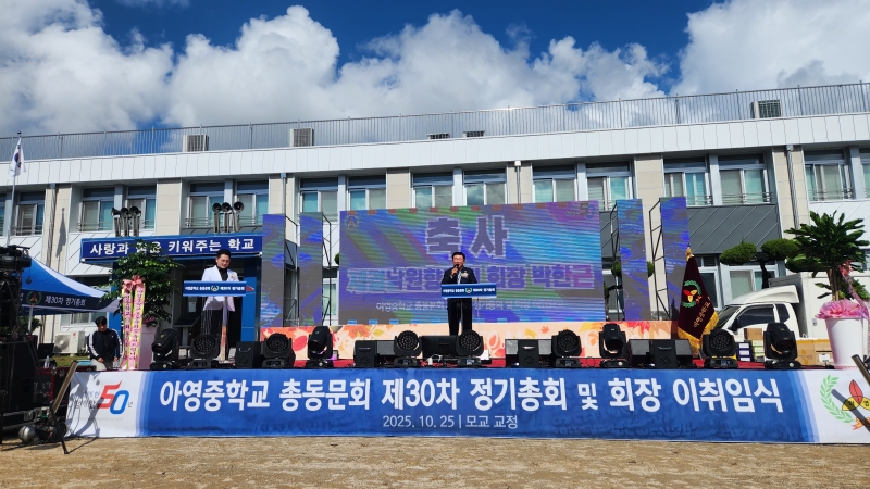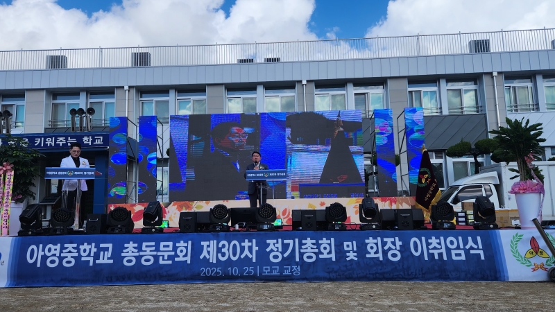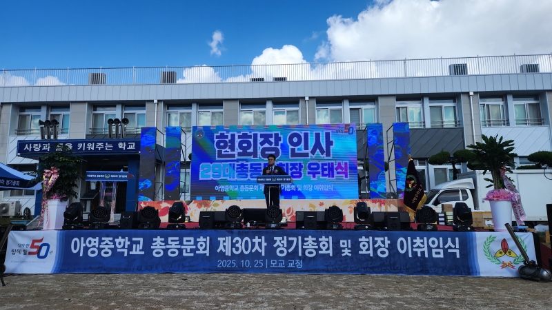 ÀüºÏ ³²¿ø½Ã ¾Æ¿µ¸é ¾Æ¿µÁßÇб³¿¡¼ 25ÀÏ 'Á¦30Â÷ Ãѵ¿¹®È¸ Á¤±âÃÑȸ ¹× ȸÀå ÀÌ¡¤ÃëÀÓ½Ä'ÀÌ ¼º´ëÇÏ°Ô ¿·È´Ù.