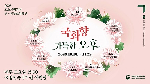 À̹ø °ø¿¬Àº '±¹ÈÇâ °¡µæÇÑ ¿ÀÈÄ'¸¦ ÁÖÁ¦·Î ÃÑ 6ȸ¿¡ °ÉÃÄ ÁøÇàµÇ¸ç, ±¹¸³¹Î¼Ó±¹¾Ç¿ø ¹«¿ë´ÜÀ» ºñ·ÔÇØ Àü¹®¿¹¼ú´Üü¿Í ´ëÇÐÀÌ Âü¿©ÇØ ±¹¾ÇÀÇ ÀüÅë°ú Çö´ëÀû °¨°¢À» ¾Æ¿ì¸£´Â ¹«´ë¸¦ ¼±º¸ÀδÙ.